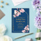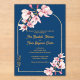 Elegant Navy Magnolia Floral Acrylic Wedding Invitation with Gold Arch .