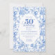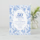 Make this milestone celebration unforgettable with a 50th birthday invitation featuring classic French toile de jouy roses in elegant shades of navy blue, royal blue, dusty blue, and deep blue. This refined floral design blends timeless European charm with modern sophistication, creating a truly classy invitation worthy of a 50th birthday celebration.