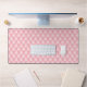 Desk mat with a beautiful feminine pattern. Soft pink pattern in puffy diamond shapes with a gold bead in the centre. Luxury elegance vibe.
