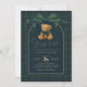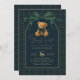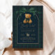 Drawing inspiration from polo club elegance and classic equestrian tradition, this teddy bear themed invitation sets the stage for a sophisticated baby shower with enduring appeal. A rich palette of deep navy and forest green, accented by a graceful statement bow, creates a look that feels both heritage-inspired and effortlessly luxurious.