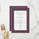 Dark purple wedding menu card design features a beautiful chic border in cassis purple that includes an elegant petite white border. Calligraphy and script are charcoal grey on a white background. A modern template includes names of couple, wedding date and editable menu all in a trendy unique calligraphy with script design. NOTE: The wedding date display as shown, uses the vertical bar or line which can be found above the \ on a keyboard or on your smart device with the special characters. You can also customise with any other character of your choice.] The back of the card is solid Cassis. Contact us at InvitationSuites@gmail.com with questions or special requests!