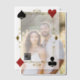 The invitation is printed on smooth, semi-translucent vellum paper, giving it an ethereal and refined look. The soft, milky texture of the paper creates a subtle sense of luxury, while allowing a faint hint of the underlying design to peek through. Glamourous and elegant design featuring modern QR code, gold Art Deco shape with Fleur-de-lis, playing cards suits, initials on the back; all on gold Art Deco pattern background. Use Personalise tool to add your info. For matching items, please, visit my QR Code Wedding Collection.