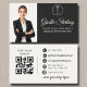 A sleek and professional business card design created for real estate agents and brokers. Featuring a clean white background, refined typography, and space for a professional photo, this layout also includes a built-in QR code for instant access to listings or contact details. Perfect for luxury real estate professionals who want to present a polished, modern, and timeless brand identity.
