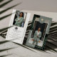 Create a refined first impression with our Elegant Luxury Real Estate Business Card Template. Designed for the discerning professional, this customizable business card features a full photo layout at the center, perfect for displaying your business portrait or brand image. The design combines modern elegance with tropical sophistication — showcasing regal palm leaf photography in the top left and bottom right corners and solid sage green accents in the opposite corners for perfect balance. A classic arched crest crowns the layout, adorned with our hand-drawn faux gold palm tree illustration and space for your two monogram initials on either side. Your name runs vertically along both sides of your portrait, while your professional title is elegantly displayed beneath. The reverse side provides room for a second photo or brand image, your logo, and all contact details in a sleek, minimalist format — creating a cohesive, high-end presentation. Perfect for real estate professionals, interior designers, attorneys, consultants, and luxury brand owners seeking a timeless, tropical-inspired identity. Design and layout by ©Moodthology Papery