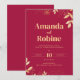 Set the tone for your glamourous day with this Luxury Red and Gold Wedding Invitation, featuring a deep maroon background and shimmering golden leaf accents. Perfect for upscale weddings, holiday-season ceremonies, or any romantic celebration with a rich, elegant flair. Customisable text and timeless design ensure it suits both modern and traditional themes.
