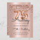 Luxury Rose Gold Glitter Balloon 75th Birthday Invitation