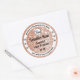 Make a lasting impression with this elegant and modern product label design featuring a luxurious rose gold coloured small to large glitter graphic with sparkling stars. The pretty white circle border matches with a rose golden shimmery frame and diamonds.