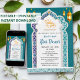 Invite your guests to a memorable Iftar dinner with this stunning luxury invitation. Featuring a majestic Islamic arch with intricate geometric patterns, glowing golden lanterns, and a deep teal-blue background, this design exudes elegance and tradition. Perfect for Ramadan gatherings, Eid celebrations, or any formal Islamic event. Easily customise the text to make it your own.