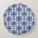 Luxury Royal Blue and White Baroque Floral Pattern Round Cushion