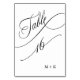 Luxury Script Black and White Wedding Number 16, Table Number