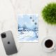 This design captures a beautifully serene snowy village scene, rendered in a sophisticated blue and white watercolor palette. This calming imagery provides a universally inclusive, non-religious greeting. The card is instantly elevated by the presence of shimmering real silver foil—this raised texture foil is used for the elegant "season's greetings" text on the front and for three delicate hanging snowflakes, adding a captivating, tactile dimension and festive sparkle. The interior is ready to be customised with your Company Name and heartfelt wishes.