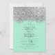 Luxury Silver Neo Mint Glitter Confetti Wedding Invitation