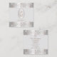 Make a lasting impression with this luxurious and elegant business card design featuring fine filigree ornate ornaments with diamonds and sparkling stars. The borders are shimmery silver with rose gold coloured decor on a pastel grey background.
