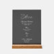 This dark acrylic sign features refined typography and high contrast lettering, creating a dramatic and luxurious look for your wedding bar.