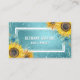 A whimsical, feminine floral business card with a teal blue glitter and foil graphic background, bordered by watercolor sunflowers. Add your own name and profession ( hair stylist, makeup artist, cosmetologist, lash artist, etc ) to the front templates. Your business information can be made available in the templates on the back of the card.