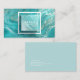 Immerse your brand in modern luxury with this captivating and artistic business card design. Featuring a stunning liquid marble effect, this card swirls with vibrant shades of teal, turquoise, and aqua, beautifully accented with elegant veins of shimmering gold glitter. The fluid, abstract background evokes the beauty of natural agate stone or gentle ocean waves, creating a sense of dynamic sophistication. A clean, white square frame provides a contemporary anchor to the design, while a semi-transparent floating panel adds a unique dimensional effect, ensuring your professional details are presented with unparalleled style. This design is perfect for high-end brands and creative professionals, including interior designers, makeup artists, beauty salon owners, event planners, artists, boutique owners, and luxury real estate agents. Make a powerful and lasting impression with a business card that is a true work of art.