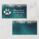 Luxury Teal Glitter Dog Paw Pet Grooming Service Business Card