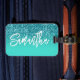 Girly glam bag tag for her featuring a luxury faux teal glitter with sparkle.