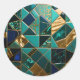 Luxury Teal Gold Geometric Mosaic Pattern Classic Round Sticker