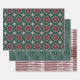Luxury tile pattern, graceful lines, crossed paths Wrapping Paper Sheets - dark green and maroon are the deep tones in these papers. Non traditional Christmas paper or fun year round gift wrapping paper. A 4 point star is the corner for each tile in the first paper, followed by wavy white lines on a deep green background. The third paper had white lines on the maroon background, crosing in such a way to make an interesting plaid pattern. Great paper for both children and adults.