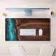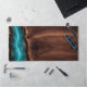 Luxury Walnut Wood and Teal Resin Art Desk Mat