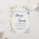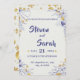 This elegant wedding invitation features a textured white background with an intricate navy blue floral border and delicate gold accents. The sophisticated design combines classic and luxurious elements, to make your day special.