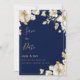 Luxury white gold floral navy blue wedding Save the Date invitations timeless blend of elegance and sophistication, this white and gold floral wedding invitation features delicate botanical accents and shimmering metallic details. The refined navy blue backdrop highlights the intricate gold foiling, creating a radiant and romantic impression. Perfect for couples seeking a classic yet opulent design, it sets the tone for an unforgettable celebration. Exquisite craftsmanship ensures every card feels as special as your day.