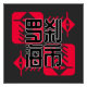 This image features four red squares with stylised eyes in the corners. These squares are arranged in a grid pattern, with the top left square containing the Chinese character "罗" (luo), the top right square containing the character "杀" (sha), the bottom left square containing the character "海" (hai), and the bottom right square containing the character "市" (shi). These characters are all related to the concept of "fantasy" or "mystical" in Chinese. The overall design is bold and geometric, with a strong sense of visual impact. The use of red and white creates a striking contrast, and the eye motifs add a sense of intrigue and mystery.