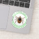 A Lyme Disease prevention sticker with a picture of a deer tick on it and text that says, 'May is Lyme Disease Awareness Day."