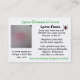On the back of the card is a list of Lyme symptoms.