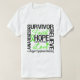 Lymphoma Cancer Survivors Motto T-Shirts and Gifts in stylish scripted fashion with distressed undertones featuring a whimsical lime green ribbon and empowering slogan of Faith, Hope, Determination, Love, Believe and Awareness to support Lymphoma Cancer Advocacy while inspiring the survivor with supportive and encouraging words.