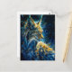 lynx bobcat bathed in blue yellowish neon light postcard