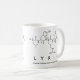 Lyric spelled out in amino acids as L Y R I C (Leucine Tyrosine Arginine Isoleucine Cysteine) on a mug for the scientist in you.