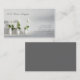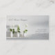 Three white roses in three white vases on a white shelf mounted on a white wall with shadows cast upon it. A very elegant contemporary business card. Can be used for numerous occupations and trades.