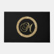 M gold monogram on black doormat
