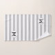 M letter on Silver Grey & White Striped Bath Towel Set