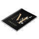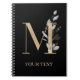 Letter M monogram floral. Letter M in golden brown texture accented with green watercolor compound leaves, flower blossoms and gold dust. Personalise with name in matching font.