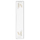 Letter M monogram floral. Letter M in golden brown texture accented with green watercolor compound leaves, flower blossoms and gold dust. Personalise with name in matching font.