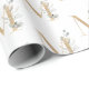 Letter M monogram floral. Letter M in golden brown texture accented with green watercolor compound leaves, flower blossoms and gold dust.