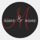 black, silver and red "M" monogram label, personalise first names perfect for newlyweds!