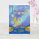 Maaf Zahir dan Batin (forgive me inwardly and outwardly) greetings for Eid al-Fitr written in Malay. Lanterns at night above a crescent moon and glowing star. Watercolors mixed with black pen and splashes of gold metallic tones. Add your custom verse inside as you like. Art, image, and verse copyright Shoaff Ballanger Studios, 2022.