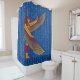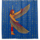 A shower curtain features Ma'at standing with outreached wings. The golden Hieroglyphs is on blue background but you can customise it to any other colour.