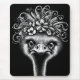 A detailed depiction of a cute ostrich captures the intensity and grace of the wild animal against a subtle, black background. The contrast between the ostrich has sharp features.