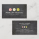 A colourful trio of French macaron cookies becomes a unique identity on this designer business card template for bakeries, pastry chefs, cafes, home-made goods, food bloggers, etc. Set on a black chalkboard background image. © 1201AM CREATIVE