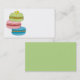 Hand illustrated mixed media illustration of green, pink and blue macarons, also commonly referred to as macaroons. A little yellow daisy flower rests on top. To add text to your business card, click on Customise It. A fun whimsical design for a bakery or patisserie.