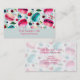 Chic looking business card template with a watercolor design of sweet and delicious french macarons tumbling all around. Pretty watercolors - pink, red, and teal green. Random berries floating arouind too. Like strawberries, cherries and blueberries. Fresh and delicious looking. Set on a green polka dot background. Perfect for bakers, bakeries, pastry chef, pattiserie etc...