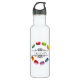 Chic water bottle design. Pretty watercolors create sweet and delicious french macarons in a circular formation. In the centre is a decorative frame personalised with a name.  The macarons are painted in many nice colours like pink, blue, lime green, sunny yellow, red, purple etc.