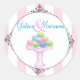 Darling Macarons and Gateau Stickers with a darling doodled frame and pink and white stripes. Place on your packages, customise the name if you wish and send off !