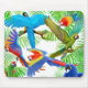 Original artwork by designer Carolyn McFann of colourful macaw parrots from hyacinth, blue & gold and hybrid macaws to military and scarlet on quality gifts, postage and cards.