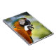 colorful macaw photograph on a notebook